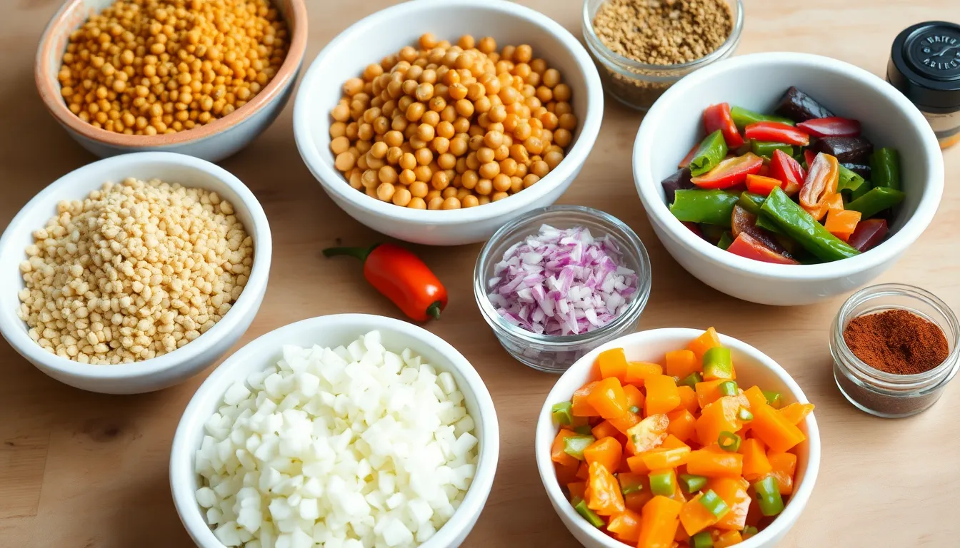 Choose high-quality grains like lentils or quinoa for the base. Rinse grains thoroughly to remove any debris. Chop onions, garlic, and bell peppers into small pieces for even cooking. Select fresh vegetables, such as carrots and zucchini, to add color and flavor. Gather optional ingredients like leafy greens and fresh herbs for added nutrients. Measure spices like cumin, coriander, and paprika beforehand for easy access during cooking. This careful preparation sets the stage for a delicious fostardu.